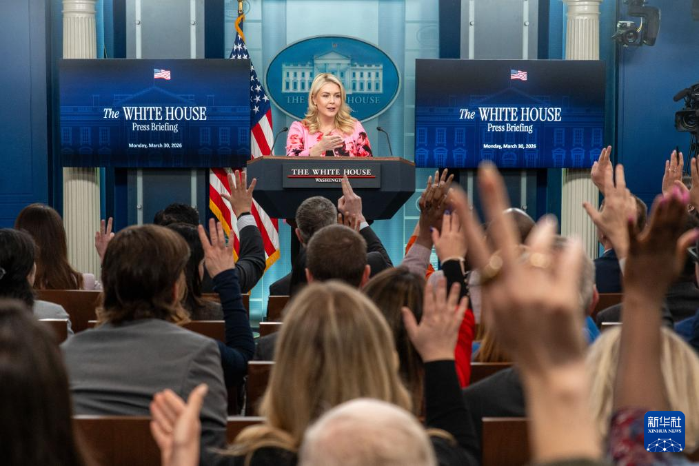 ??3月30日,在美國首都華盛頓白宮,白宮新聞秘書萊維特出席記者會。新華社發(fā)(李源清攝)